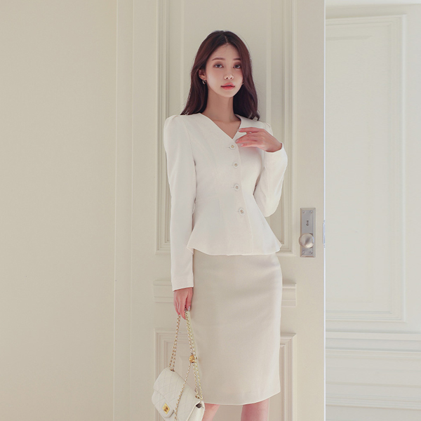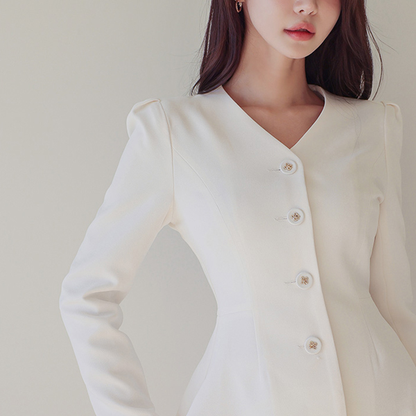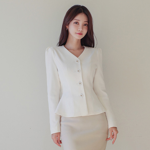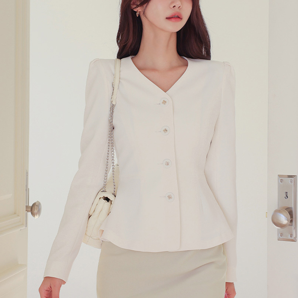 V字领 荷叶边 职业装 夹克