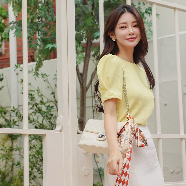 糖 颜色 泡泡袖 短袖 T恤衫