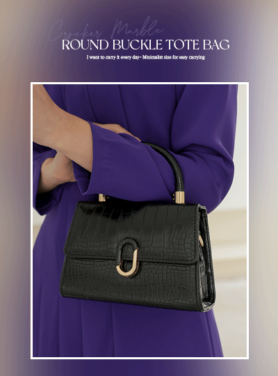 鳄鱼纹 大理石 配色 圆领 带扣 手提包