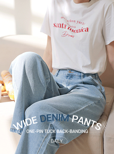 细褶 后腰松紧带 宽松 牛仔色 裤子