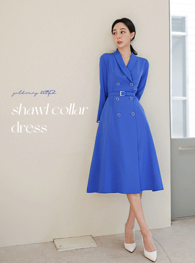 披巾领 黄金环 束带 软绵绵软的 连衣裙