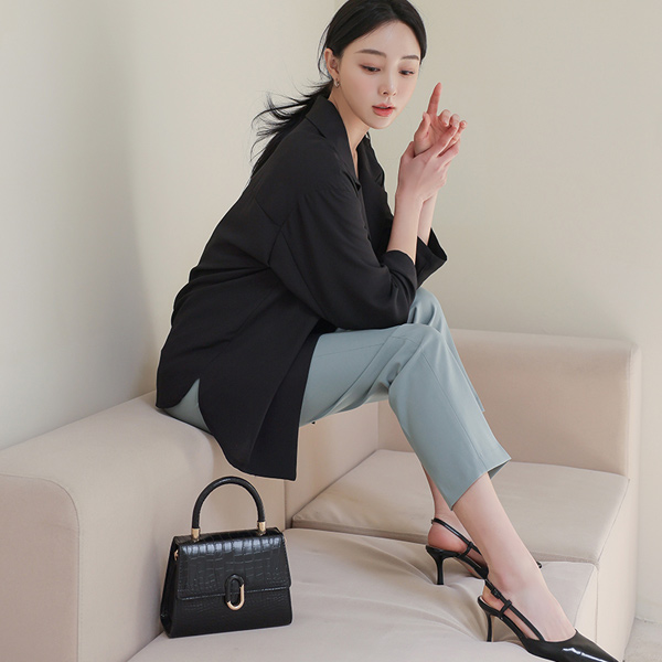 鳄鱼纹 大理石 配色 圆领 带扣 手提包