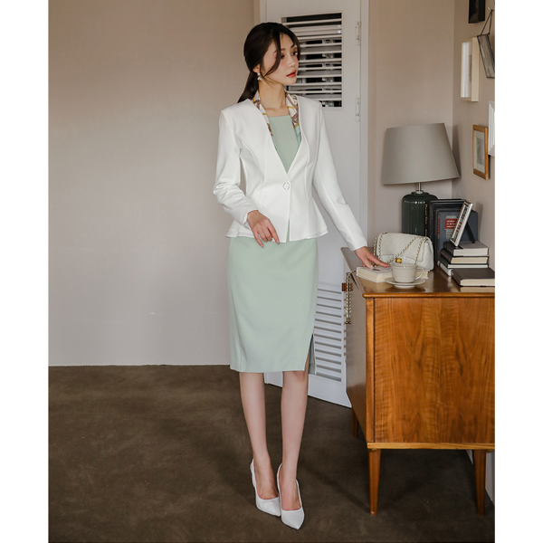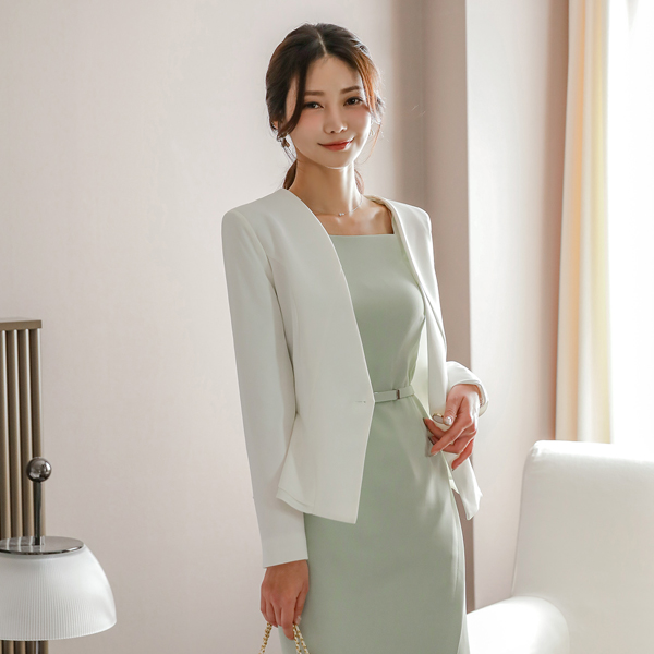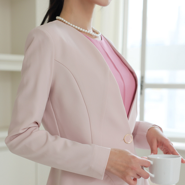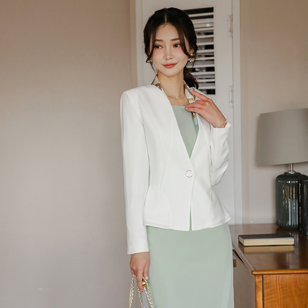 波浪线条 金色纽扣 无领 荷叶边 弹力 夹克 Ⅱ