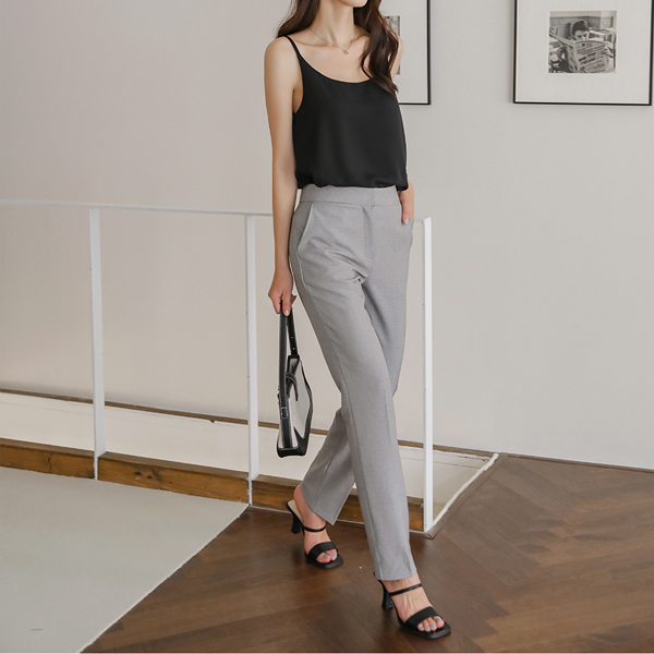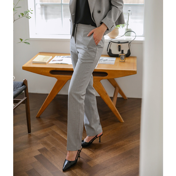 格子 斯利姆 不间断 弹力 宽松长裤