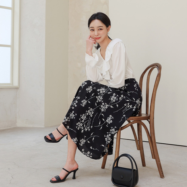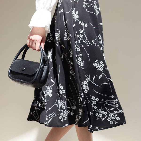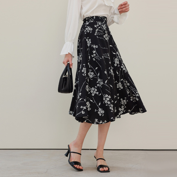 花纹 后腰松紧带 喇叭 裙子