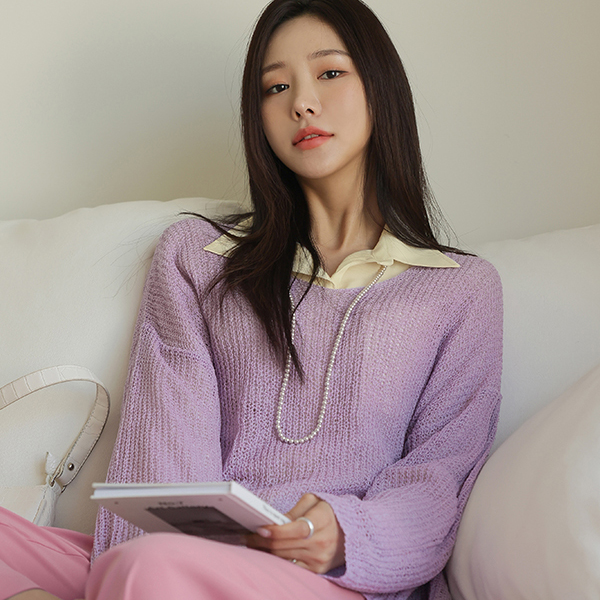 柔色 颜色 宽松 V字领 针织衫