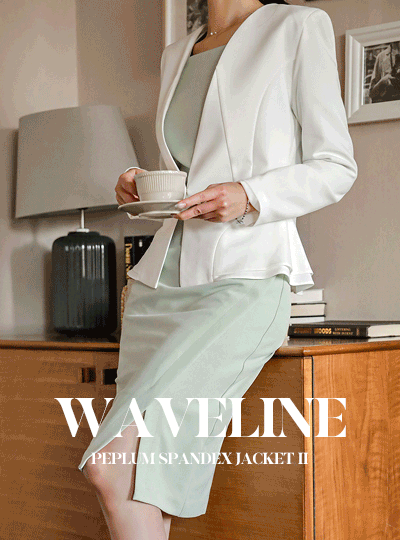 波浪线条 金色纽扣 无领 荷叶边 弹力 夹克 Ⅱ