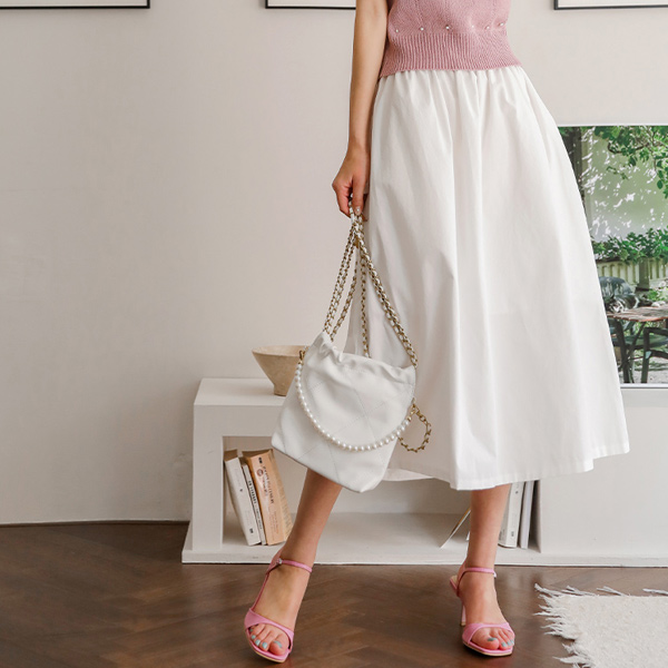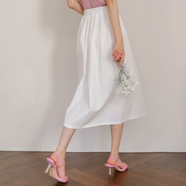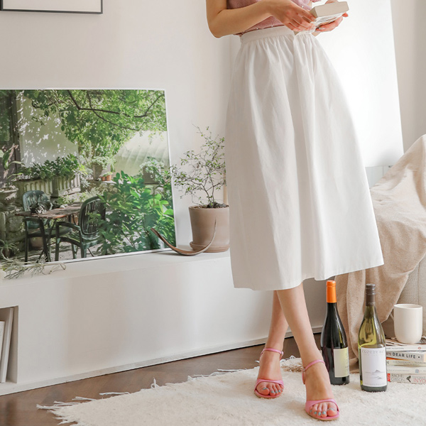 腰 褶皱 后侧松紧带 30수 棉 裙子