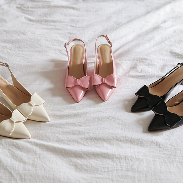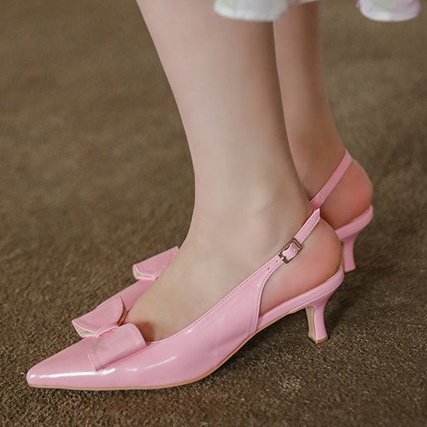 蝴蝶结 细高跟 露脚后跟鞋 高跟鞋
