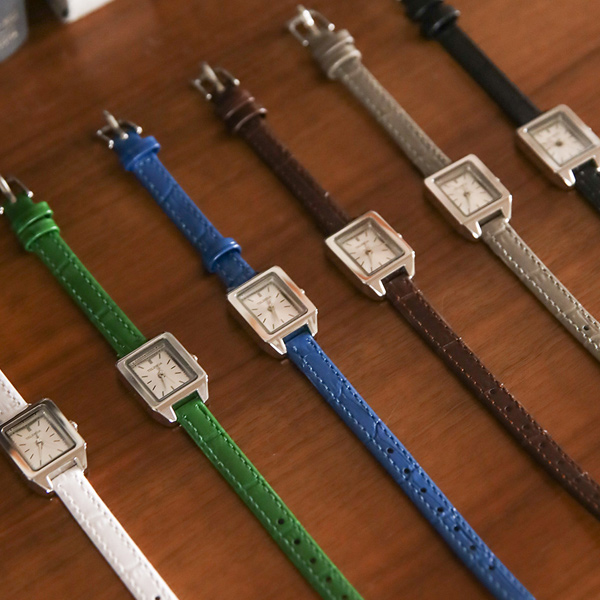色彩艳丽 牛皮 Silver 方形 边框 手表