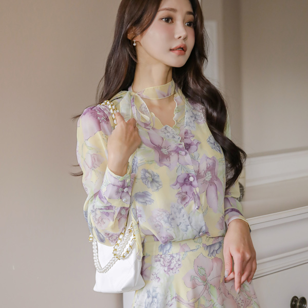 Blossom 雪纺 波浪卷 蝴蝶结 罩衫