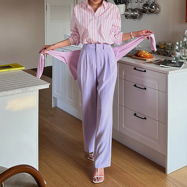 软绵绵软的 双 细褶 宽松 宽松长裤