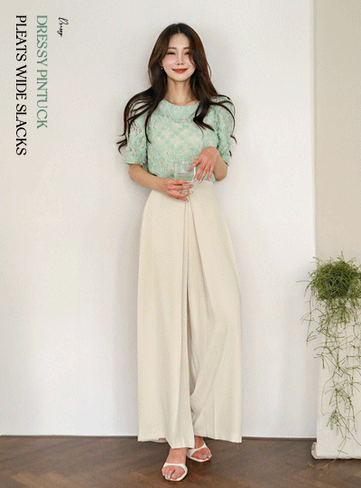 时髦的 细褶 褶边 宽松 宽松长裤