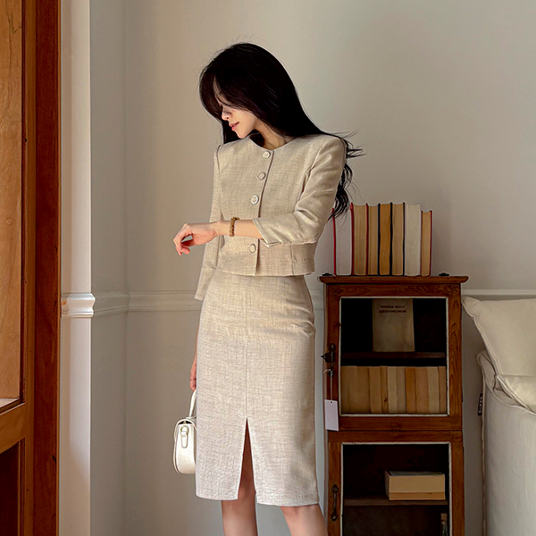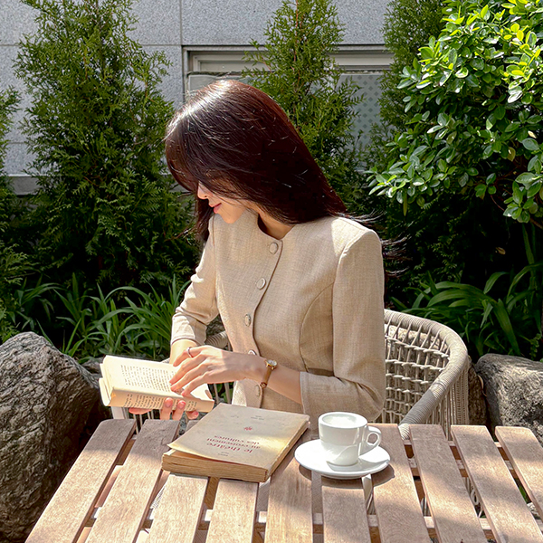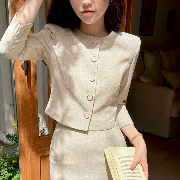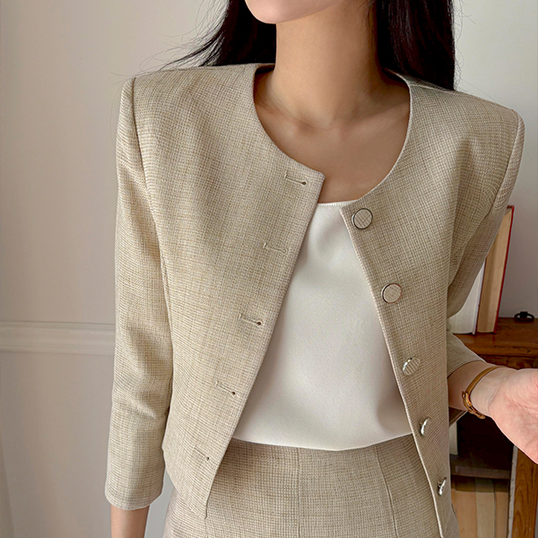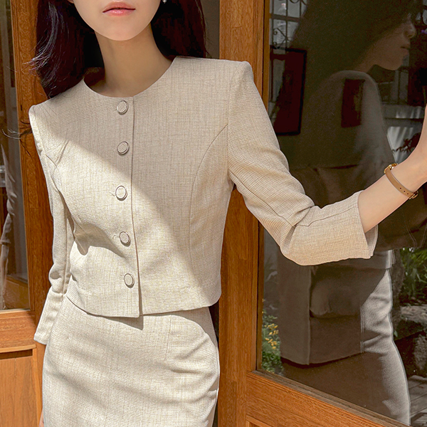 Jane 亚麻 质地 7分裤 夹克