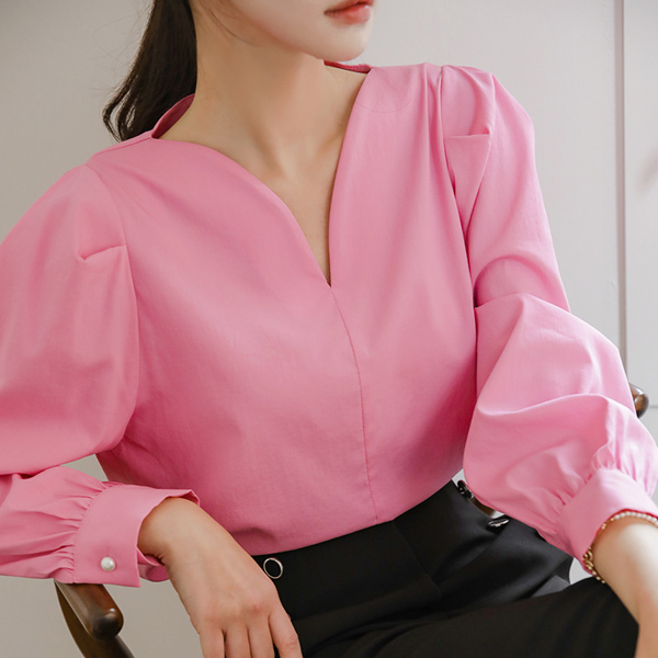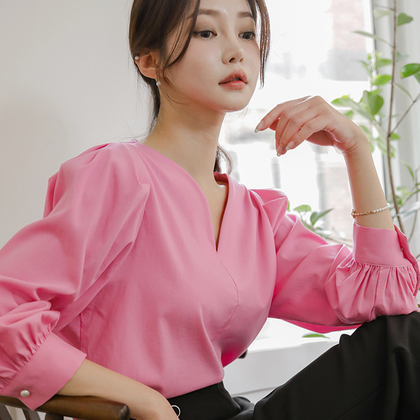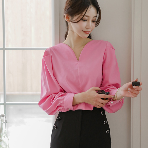心形领 珍珠扣 弹力棉 罩衫