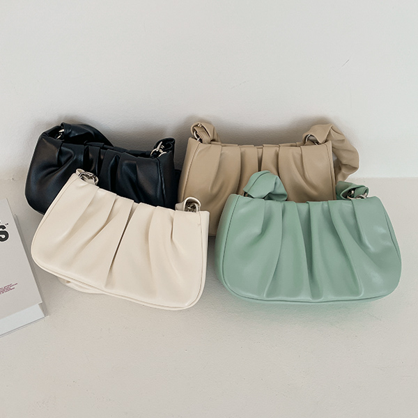 [模特穿46次]褶皱 柔丝 半月形 肩包