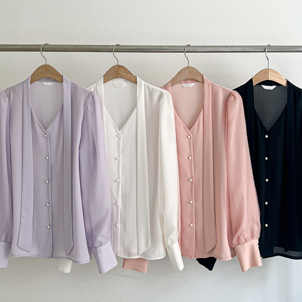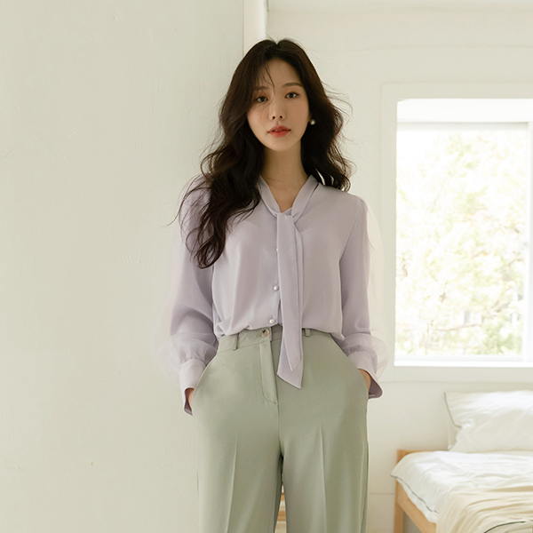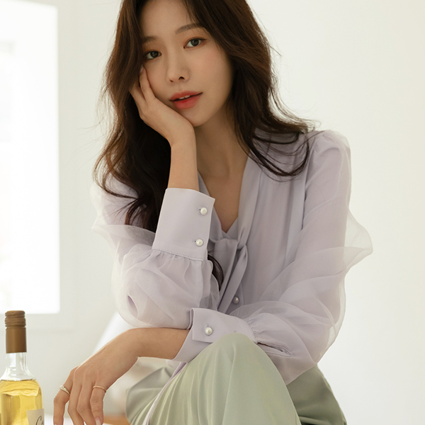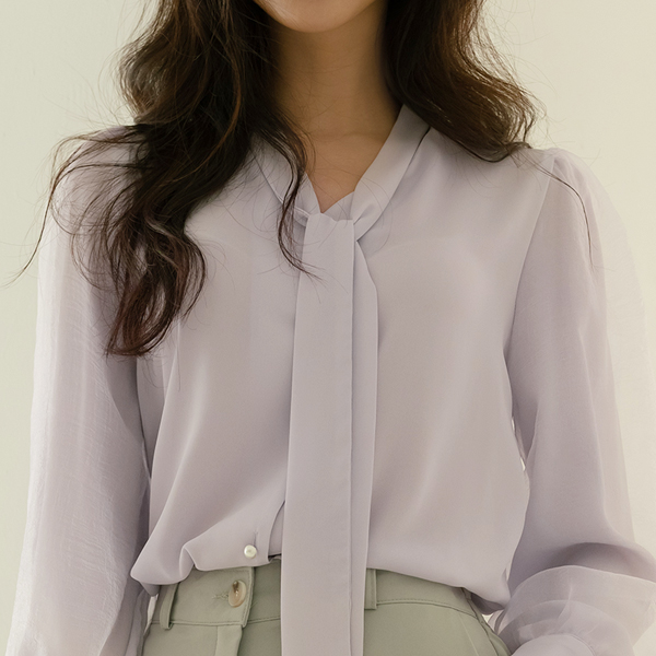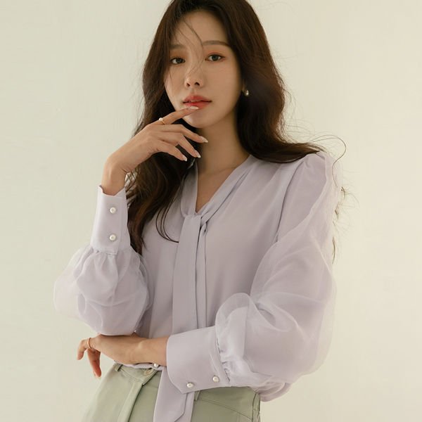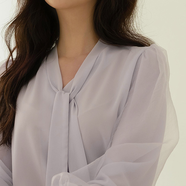 浪漫 双 织物 曲线 袖 领带 罩衫