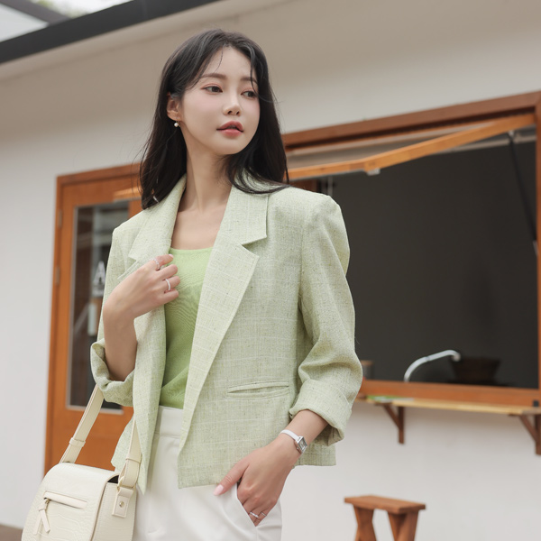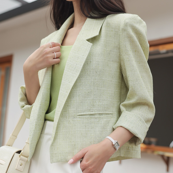 清爽 亚麻 质地 敞开式 夹克