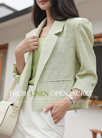 清爽 亚麻 质地 敞开式 夹克