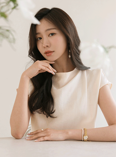 优雅 有光泽 半高领 帽檐袖 罩衫