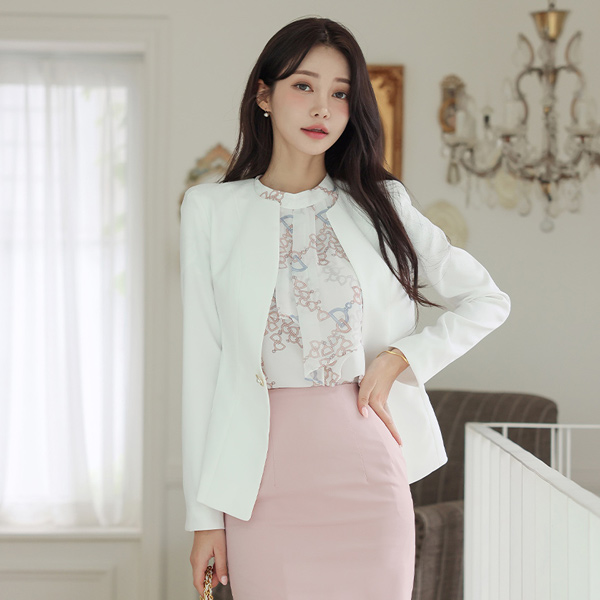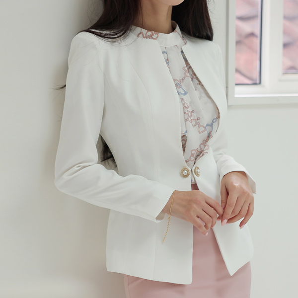 无领 波浪线条 A字型 珍珠 夹克