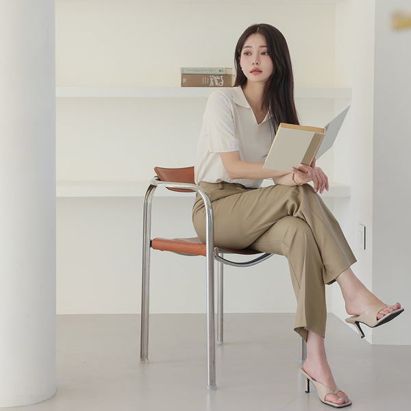 抗皱 两扣 高腰 休闲风格 喇叭 宽松长裤