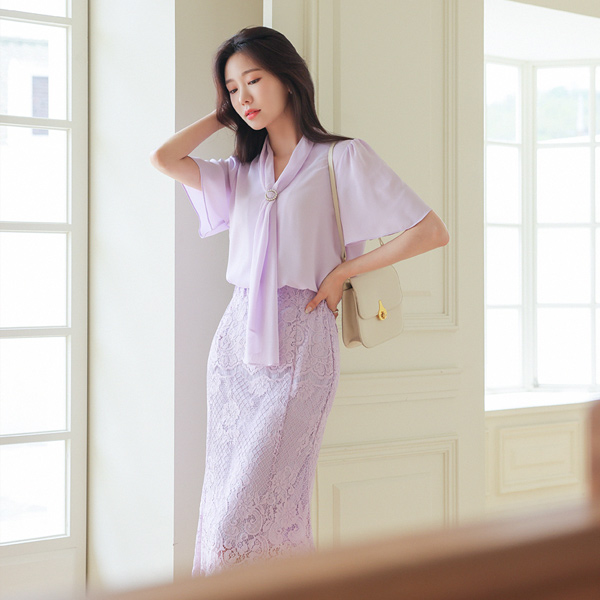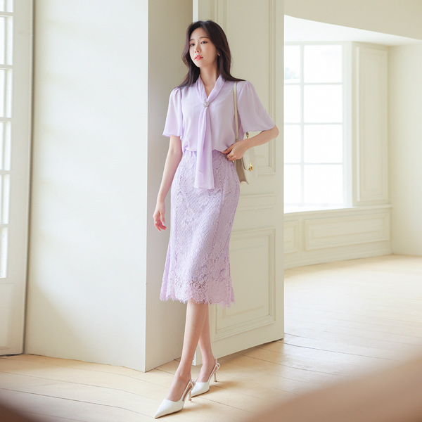女人味的 蕾丝 松紧带 裙子