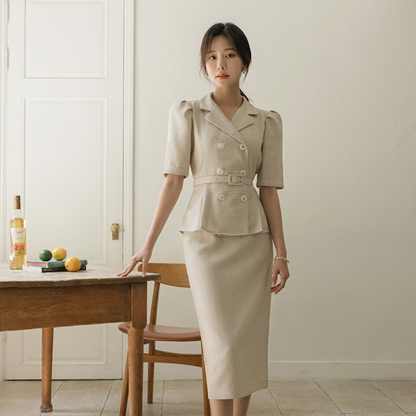 清纯 双 扣子 古典 粗呢 罩衫 夹克 (Summer)