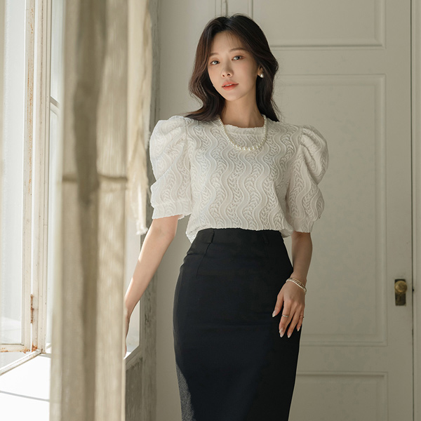 开衩 修身 弹力 裙子 (腰带SET)