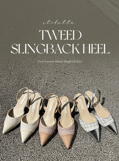 粗呢 点缀 细高跟 露脚后跟鞋 高跟鞋