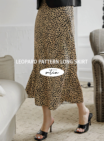 豹纹 图案 绸缎 长款 裙子