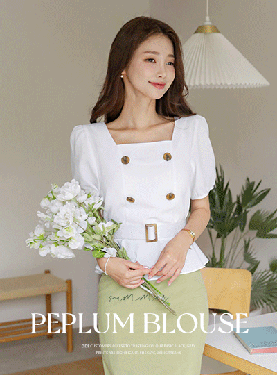 方领 双排扣 束带 荷叶边 罩衫