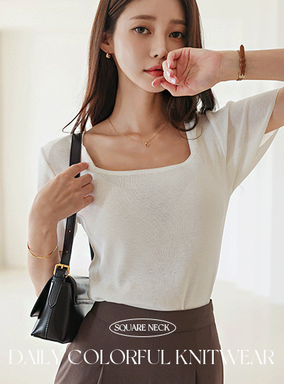日常 色彩艳丽 方领 针织衫