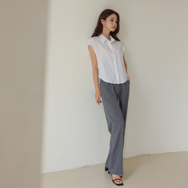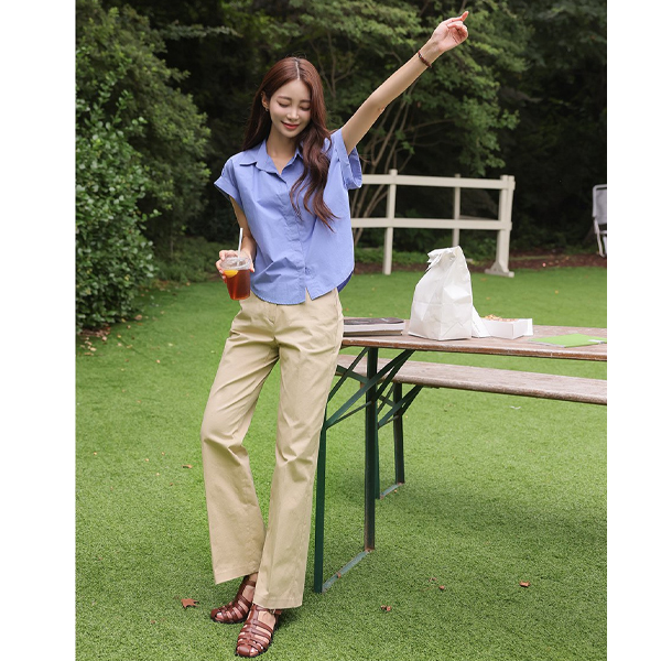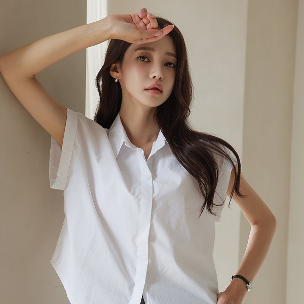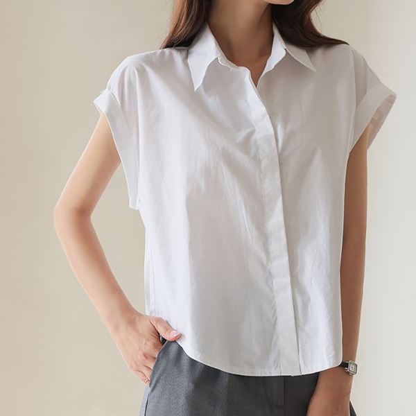 키치 摩登 帽檐袖 卷边 衬衫