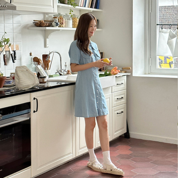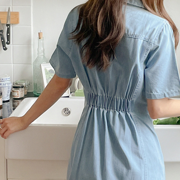 포카리 双 口袋 迷你 牛仔色 连衣裙