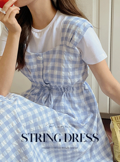 郊游装 格子 图案 夏天 抽绳 连衣裙
