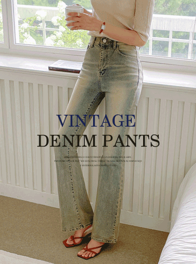复古 水洗 情调 斯利姆 喇叭 牛仔色 裤子