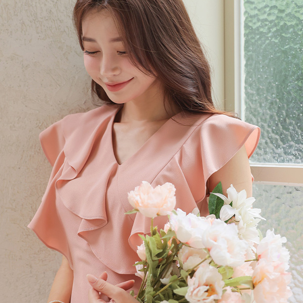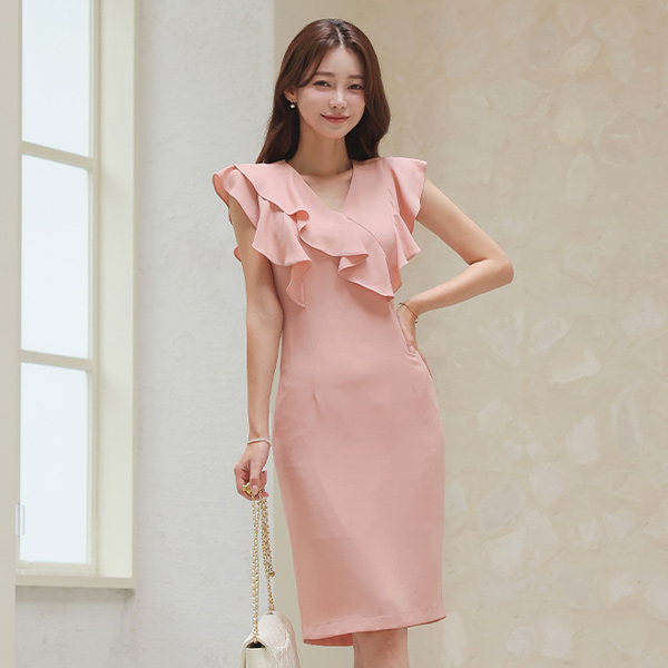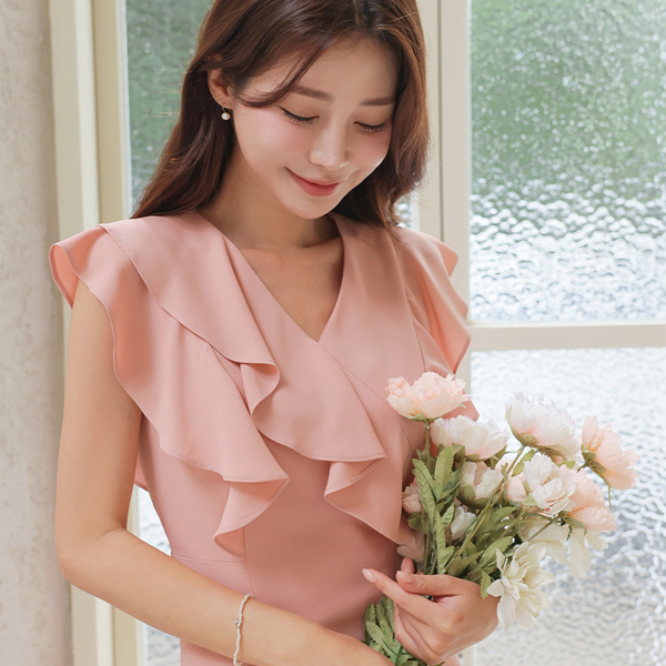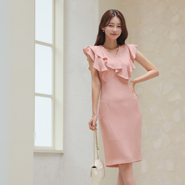 浪漫 V字领 荷叶 背心/打底衫 H字型 连衣裙