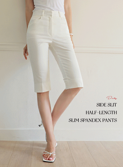 日常 侧纽 开衩 5分 斯利姆 弹力 裤子