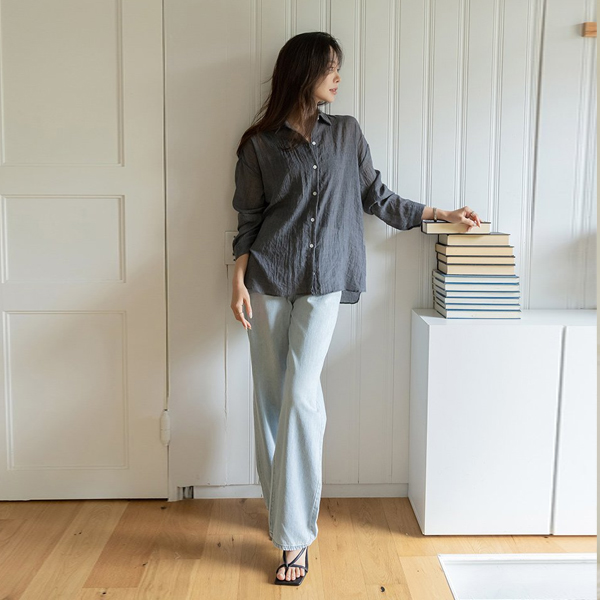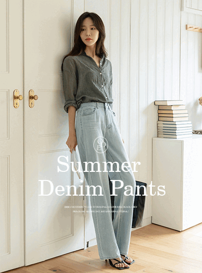 얇고 轻微的 宽绰 夏天 牛仔色 裤子