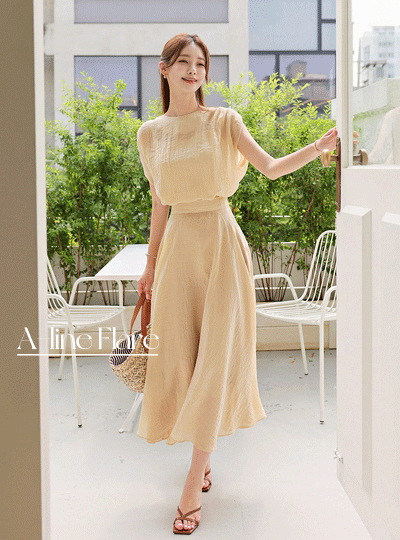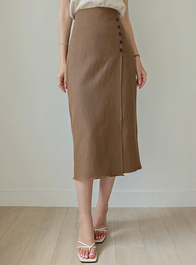 亚麻 侧纽 扣子 点缀 H字型 裙子