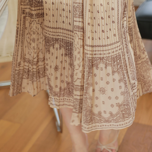 佩斯利 帽檐袖 褶裥 松紧带 褶边 连衣裙&背心 set