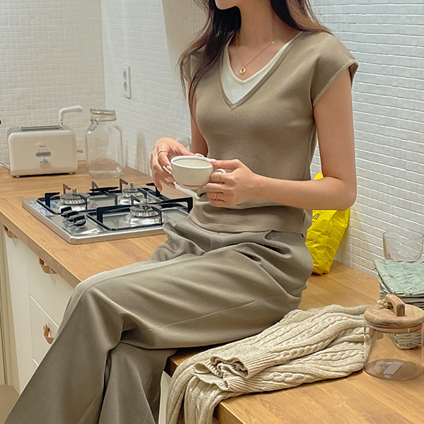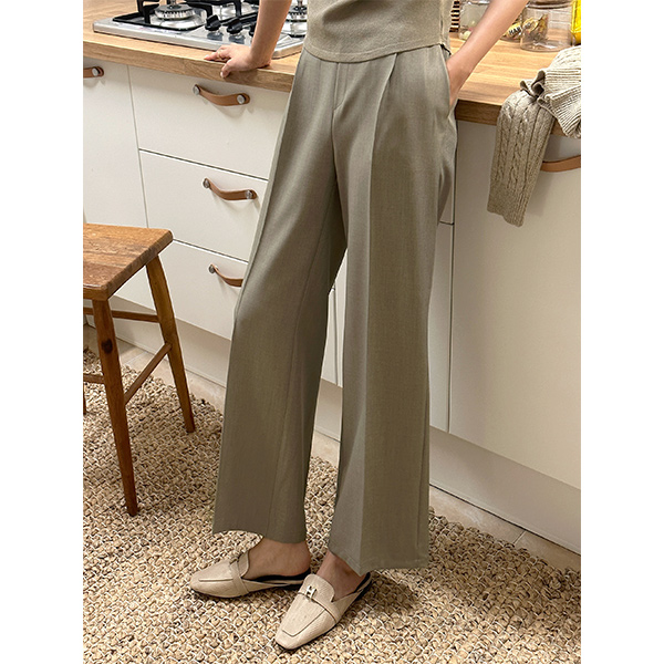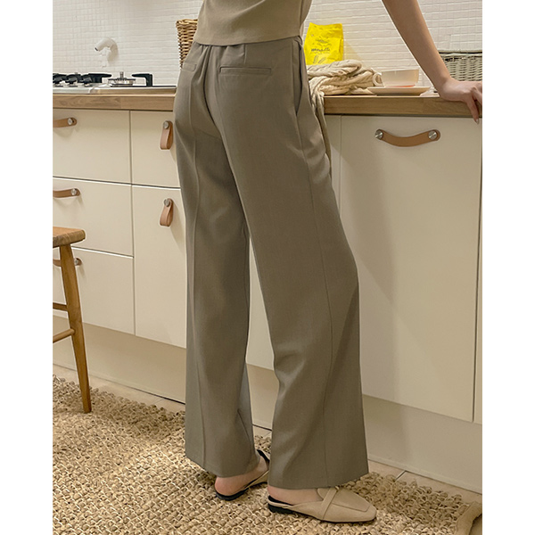 루니 원핀턱 侧纽 拉链 后侧松紧带 宽松长裤