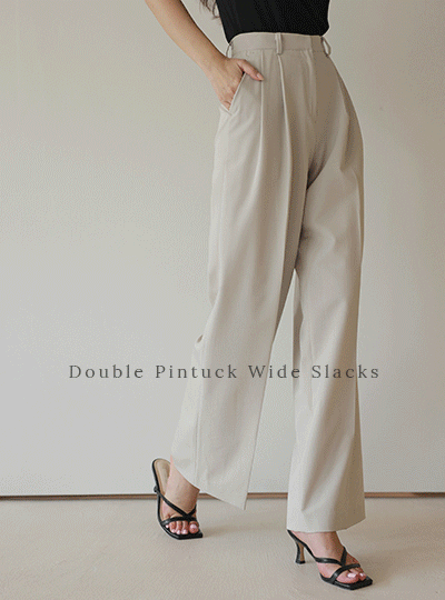 基本 摩登 双 细褶 宽松 宽松长裤