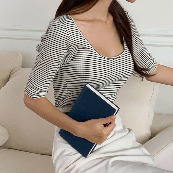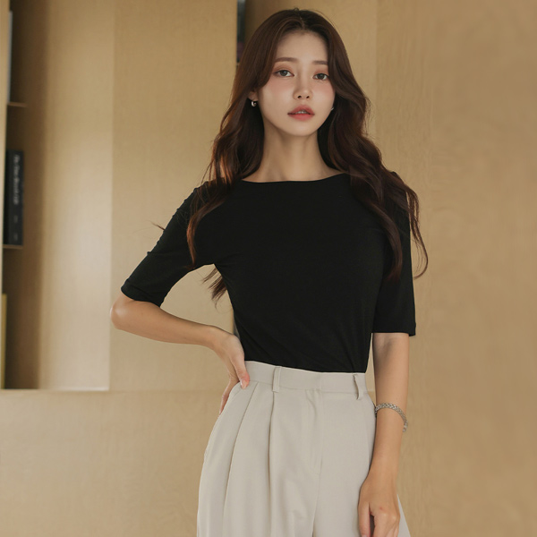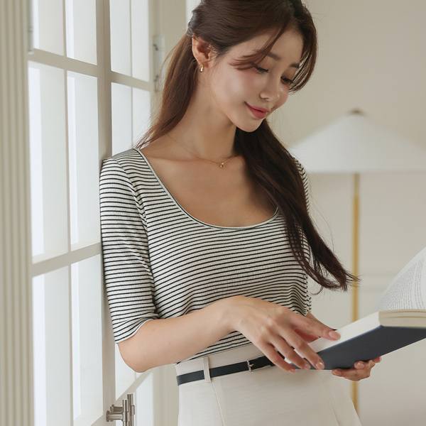 파인 双重 5分 袖 T恤衫