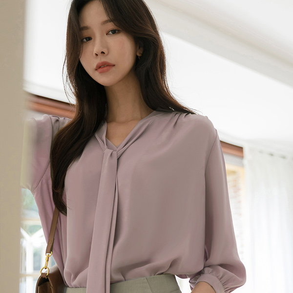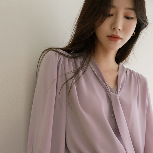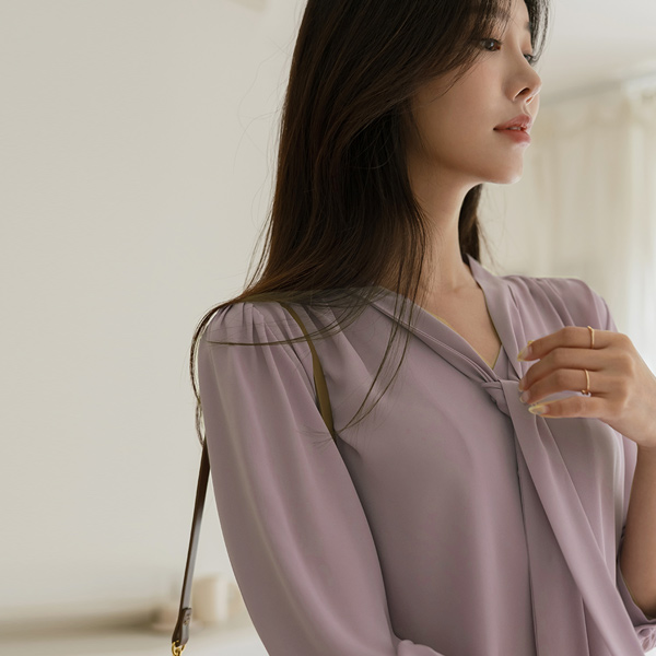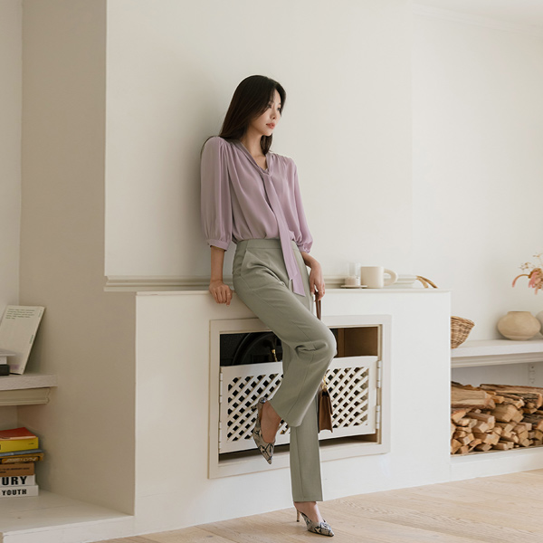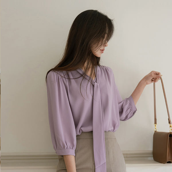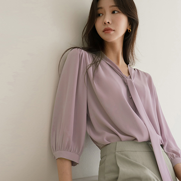 苗条 情调 褶皱 领带 7分袖 罩衫