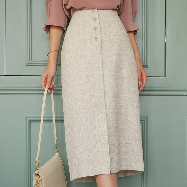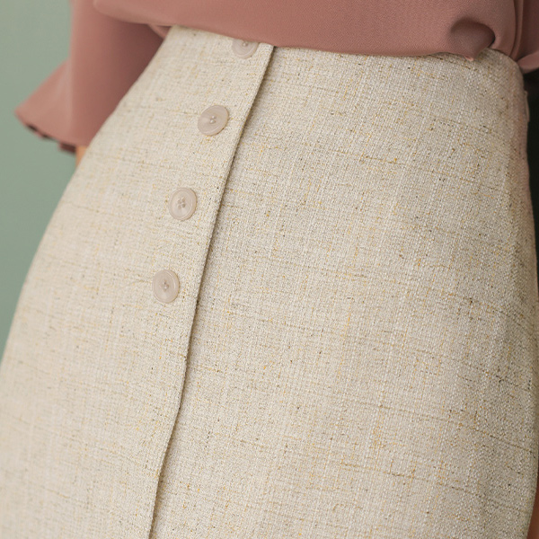 自然 织物 前面 扣子 后腰松紧带 H字型 裙子