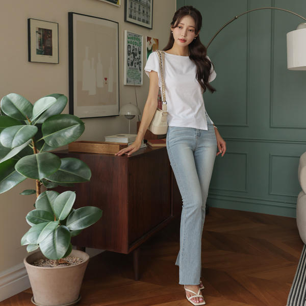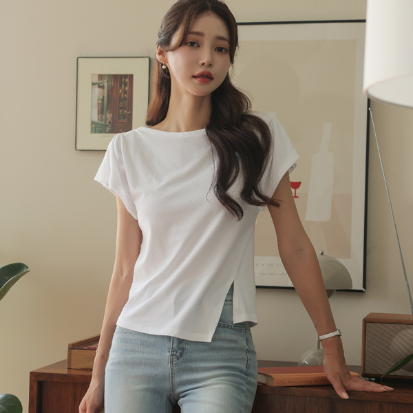 嘴唇领 插肩 侧纽 开叉 T恤衫
