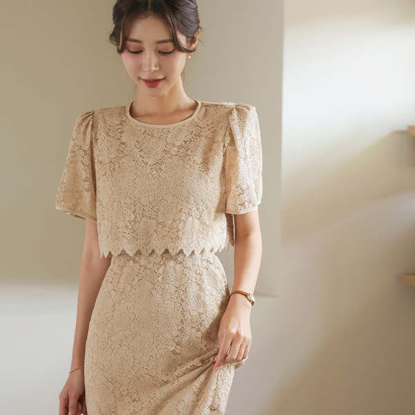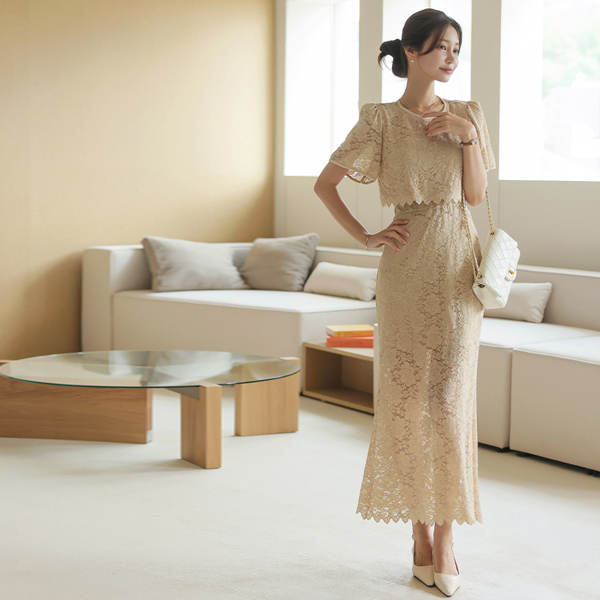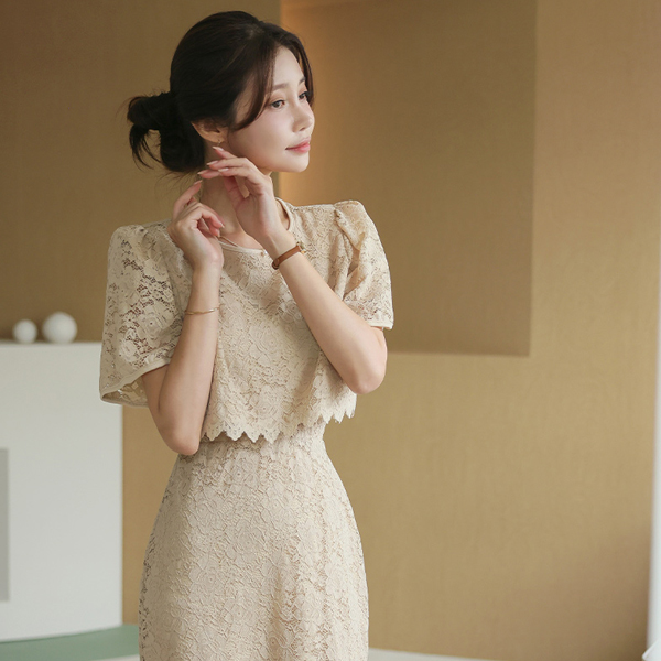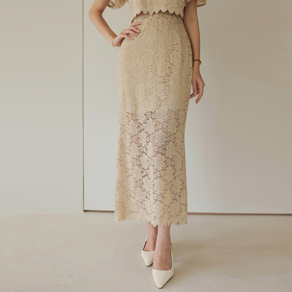 蕾丝 7分裤 罩衫&松紧带 裙子 SET