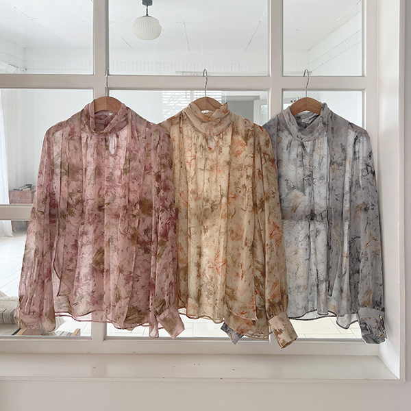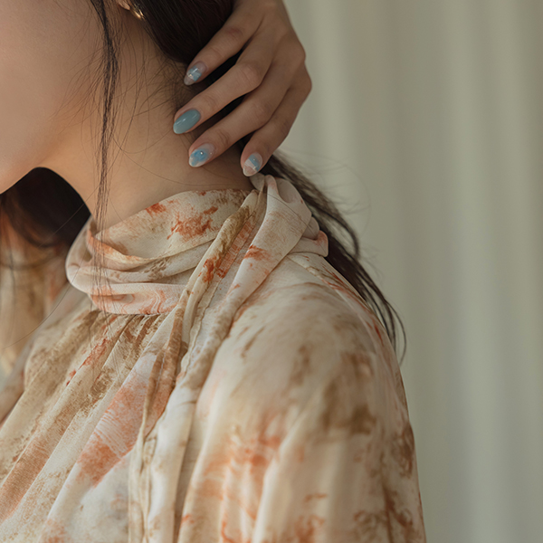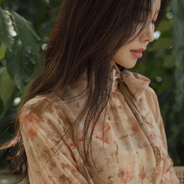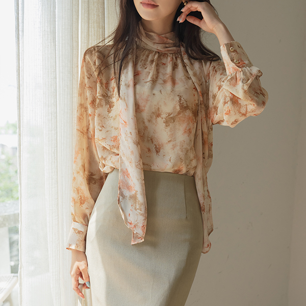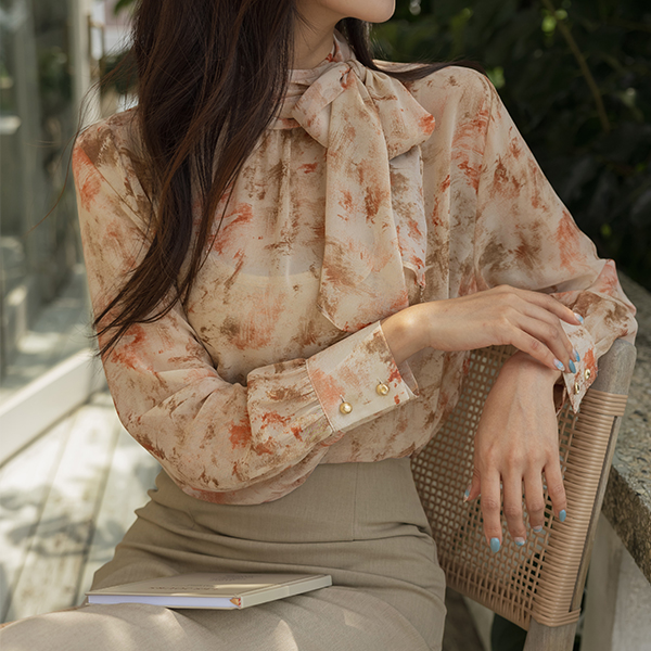로지아 情调 印染 雪纺 领带 罩衫